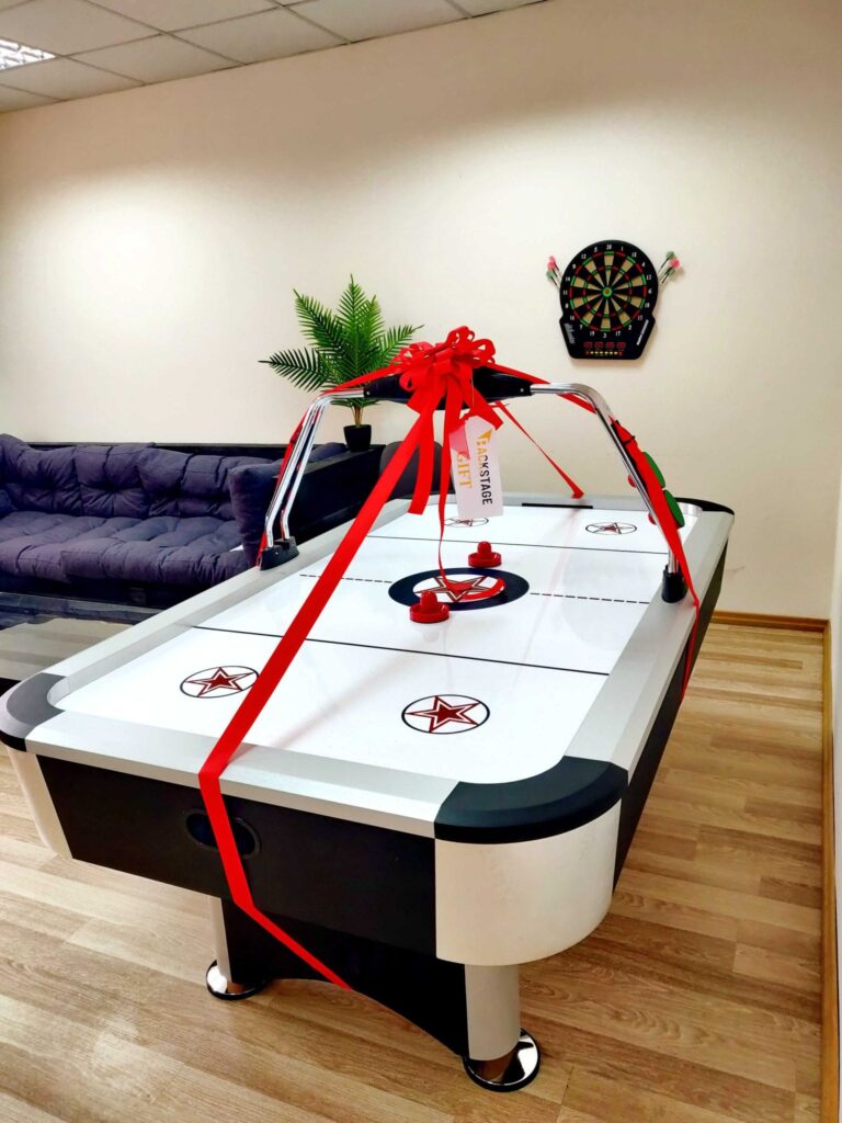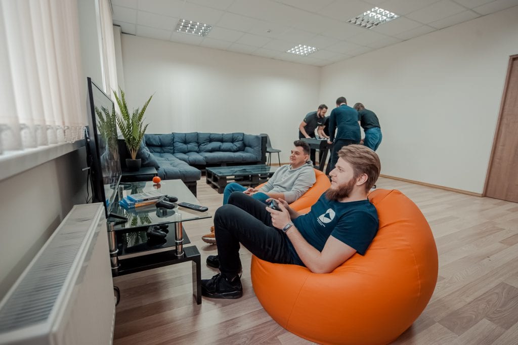 We know that people feel more energetic, motivated, and able to concentrate after a break. Our employees have the opportunity to do so by playing football, table tennis, darts, or PlayStation or reading a book in our comfortable Relaxation Room.