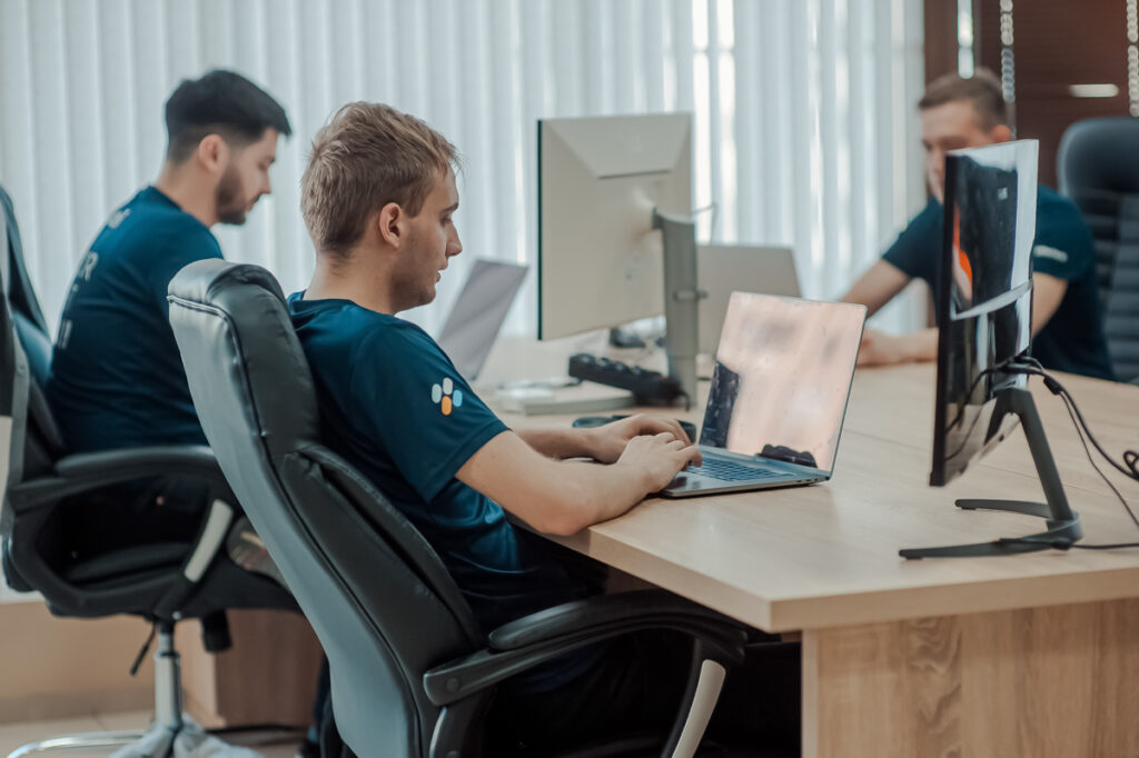 Wanneer je ons kantoor binnenkomt, zie je een hypermoderne IT-omgeving die alles heeft wat ontwikkelaars nodig hebben om optimaal te kunnen werken. We zorgen voor stilteruimtes waar je werknemers zich kunnen concentreren, maar ook voor ontspanningsruimtes, omdat beide nodig zijn om efficiënt te kunnen werken en je werknemer tevreden te houden. We integreren ook je bedrijfsidentiteit in de zone waar jouw team werkt. We brengen jouw logo aan op de muur en plaatsen banners en andere materialen met jouw merk om je ontwikkelaars te helpen om zich onderdeel van jouw bedrijf te voelen.